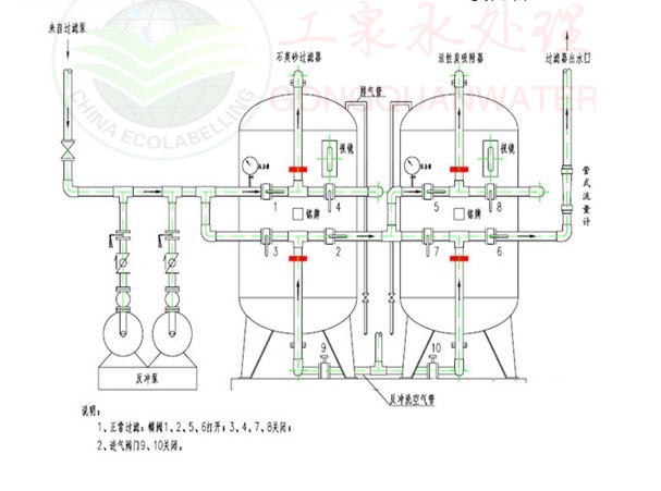 石英砂過濾器管路連接圖(串聯)