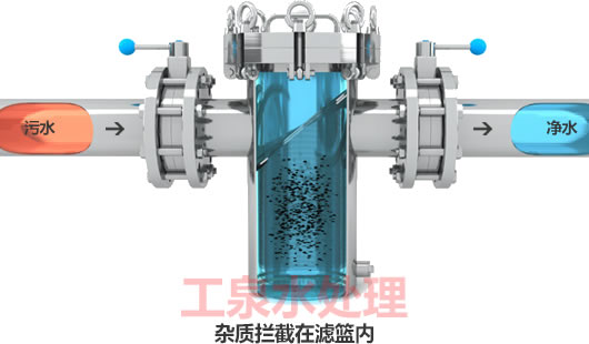 毛發(fā)過濾器工作時,介質(zhì)由進口進入濾網(wǎng)內(nèi)側(cè),經(jīng)濾網(wǎng)過濾后進入濾網(wǎng)外側(cè),經(jīng)出口進入管路系統(tǒng)。當毛發(fā)過濾器使用一定時間后由于污物的堵塞書的阻力增大,這時就需要打開過濾器的封蓋,取出里面的濾筒清洗干凈,然后再繼續(xù)使用。